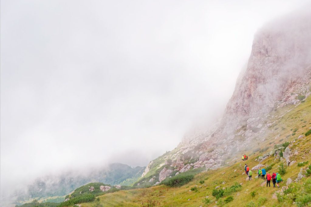 Il quarto giorno era arrivata anche la pioggia. Impermeabili indossati, coprizaini agganciati, continuavamo il nostro cammino sotto mille gocce d’acqua, danzando tra le invisibili linee di confine. Il paesaggio aveva iniziato a trasformarsi. Non tanto perché la foschia ne copriva i contorni e il temporale lo tinteggiava di grigio, ma perché trapelavano nuovi impianti sciistici, laghi artificiali e strutture alberghiere a cinque stelle. Io non riuscivo a vedere altro: una montagna di chi aveva scelto di costruire ad alta quota per soddisfare le proprie umane voglie - sfrecciare sulle piste da scii o bere il bombardino con la panna. Vedevo un luogo che aveva perso la sua storia, svendendola al turismo. Dov’era il confine che mi aspettavo di vivere? Settantottomilasessanta passi. Non avevo una risposta.