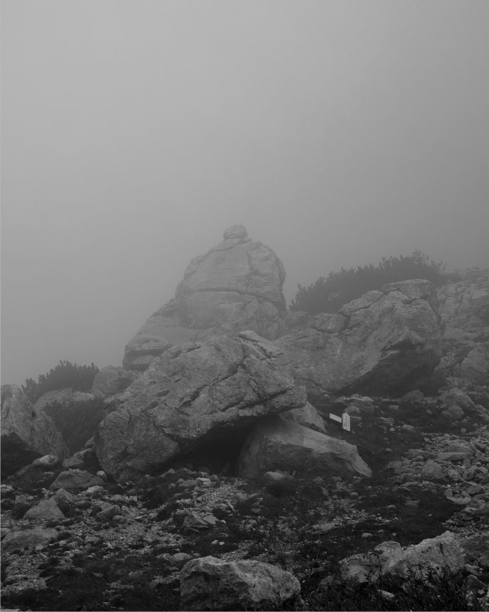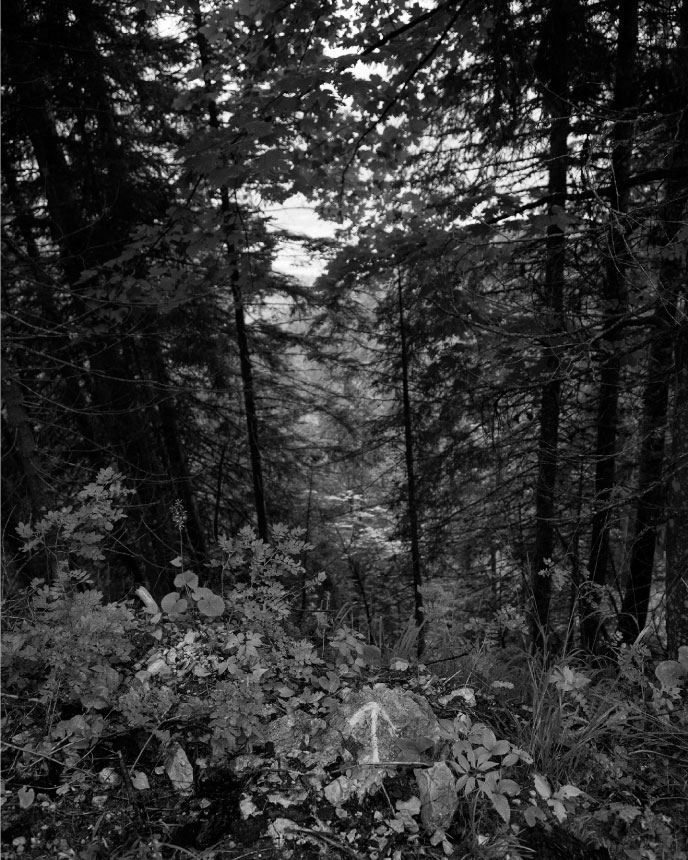 Passando, salutiamo la pietra. Dove possiamo seguirti? Il sentiero è nascosto dalle mucche. La fiducia sostiene i nostri passi: non siamo soli. Le pietre illuminano il sentiero, servono da orientamento, che spesso si perde. Nel mezzo, il confine è invisibile. Impercettibile. La libertà ci avvolge.